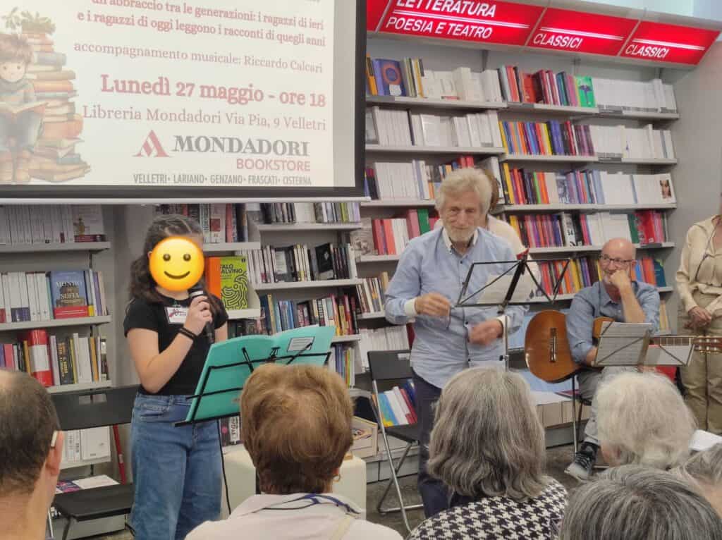 Gli allievi di allora si sono ritrovati così in Libreria a rileggere sè stessi a distanza di oltre cinquant’anni. Ad alternarsi nella lettura, oltre agli autori, “i ragazzi di allora”, sono state le giovanissime socie di Memoria ‘900 Zoe Caiola, Rachele Roccasecca e Aura Canini. Disparati i temi trattati in questi elaborati, dalla scoperta del Sarcofago delle fatiche di Ercole oggi esposto nel Museo Civico di Velletri alla tecnica di produzione del celebre pane veliterno, passando per una gita immaginata a Collodi sulle tracce di Pinocchio fino al ricordo di un gatto, evocando la mitica canzone di Gino Paoli. Ad accompagnare le letture le presentazioni di Antonietta Lucchetti, che ha introdotto con una breve contestualizzazione storica i lettori, tutti visibilmente emozionati nel rileggere i propri testi scritti ormai tanti anni fa. Il professor Riccardo Calcari alla chitarra ha sottolineato con la giusta musica tutti i momenti. Si sono succeduti nelle letture Pier Paolo Altobelli, Vera Dani, Stefano Dorigo, Ernesto De Angelis, Sandro Giuliani, Rita Lucia Marroni e Fiorella Treggiari.