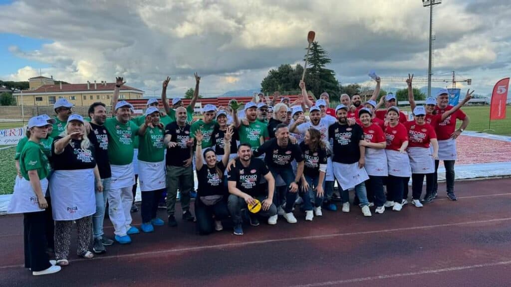 A Velletri è stata realizzata la pizza più grande del mondo (240 mq) a forma di bandiera dell’Italia