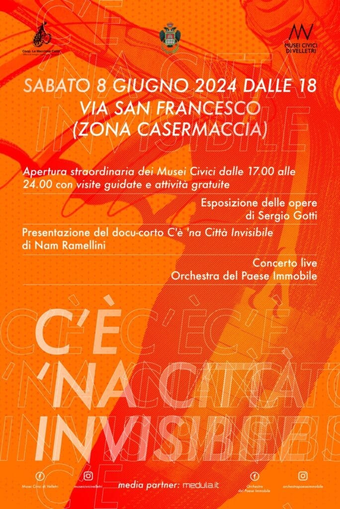 La storia del territorio narrata negli ambienti dei Musei Civici, le sculture leggere e immaginifiche di Sergio Gotti, la musica che incontra il dialetto nei brani dell’Orchestra del Paese Immobile, il docu-corto di Nam Ramellini che mostra la vita della città tra visibile e invisibile si uniscono in un unico evento che si svolgerà tra Via di San Francesco (zona Casermaccia), l’Area archeologica delle SS. Stimmate e il Museo Archeologico “O.Nardini”.
