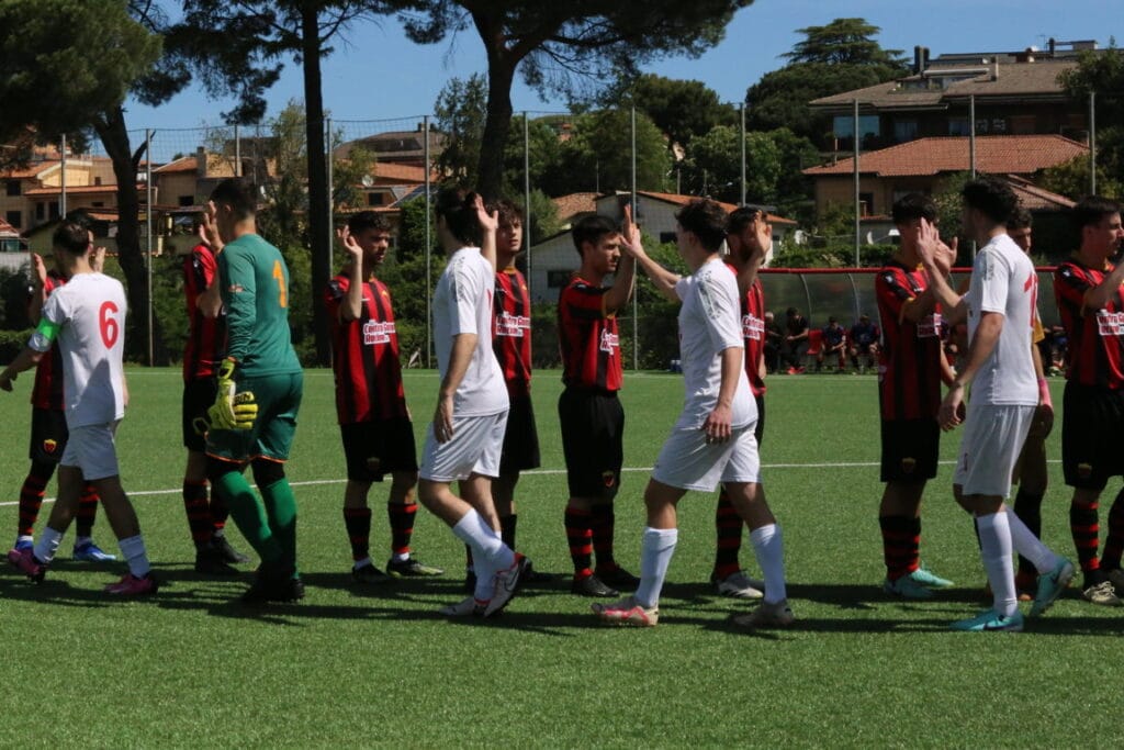La Vjs Velletri espugna il “Degli Ulivi” di Grottaferrata con una splendida prestazione, centra tre punti fondamentali e festeggia la salvezza diretta in Promozione. Ai rossoneri sarebbe bastato un punto per mantenere la categoria, ma la vittoria fuga ogni dubbio e omaggia al meglio una tribuna – quello dello stadio di Grottaferrata – praticamente monocolore con oltre trecento persone accorse da Velletri per sostenere i ragazzi di De Massimi.