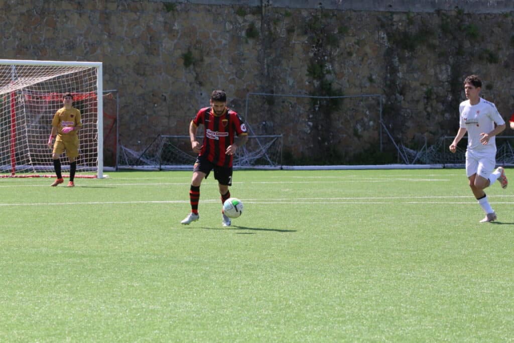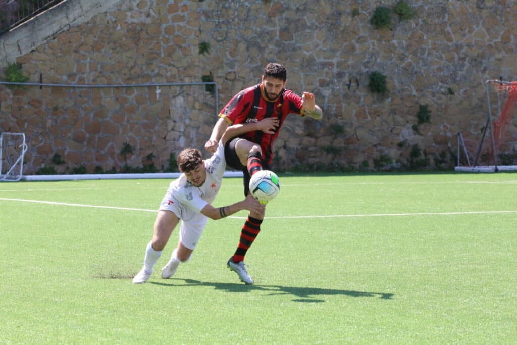 La gara non è stata semplice, perché se da una parte la Vivace Grottaferrata era già certa dei play out, dall’altra ha giocato con la testa libera e senza pressioni. Sin dalle prime battute i padroni di casa hanno tentato di imbastire la manovra e i rossoneri di lavorare sui cambi di gioco a sorprendere la linea difensiva, molto alta, dei biancorossi. La prima vera occasione arriva al 12esimo, cross di Candidi da sinistra verso destra che scavalca la difesa locale, da dietro sbuca Carlino che anticipa tutti ma non il portiere, abile in uscita a respingere. Spesso e volentieri gli avanti veliterni vengono sorpresi in offside. La Vivace fa tremare Battisti al 30esimo, Miucci a tu per tu con il portiere veliterno lanciato a rete si fa rimontare da Costanzo, l’azione prosegue e il pallone danza pericolosamente in area ma poi viene toccato di mano da un giocatore del Grottaferrata e l’arbitro fischia. AL 33esimo ancora il team di Gioacchini sorprende la retroguardia veliterna con Munafò che entra in area di rigore dalla destra, piazza al centro per il numero 9 che conclude a rete chiamando alla respinta Battisti. Al 44esimo arriva il vantaggio della Vjs Velletri: ennesimo cambio gioco da sinistra a destra, azione manovrata palla a terra e Passaretta entra in area e trova la posizione giusta per sorprendere il portiere con un tocco preciso che lo mette fuori causa e si insacca. La reazione della Vivace è veemente, i biancorossi si gettano all’attacco e conquistano una punizione e un corner ma non mordono e si va al riposo sullo 0 a 1.