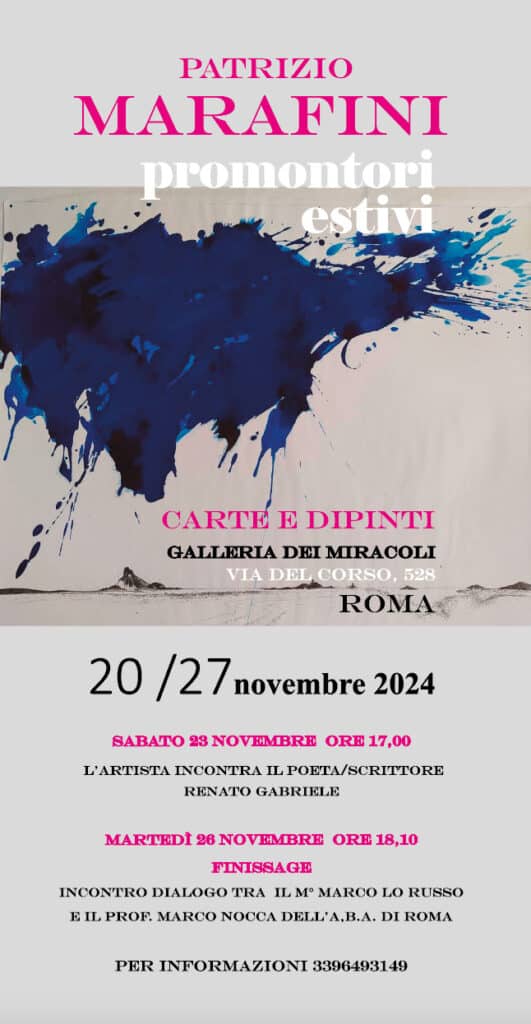 I Promontori estivi dell’artista lepino Patrizio Marafini in mostra a Roma, nella storica Galleria dei Miracoli di via del Corso, dal 20 al 27 novembre.