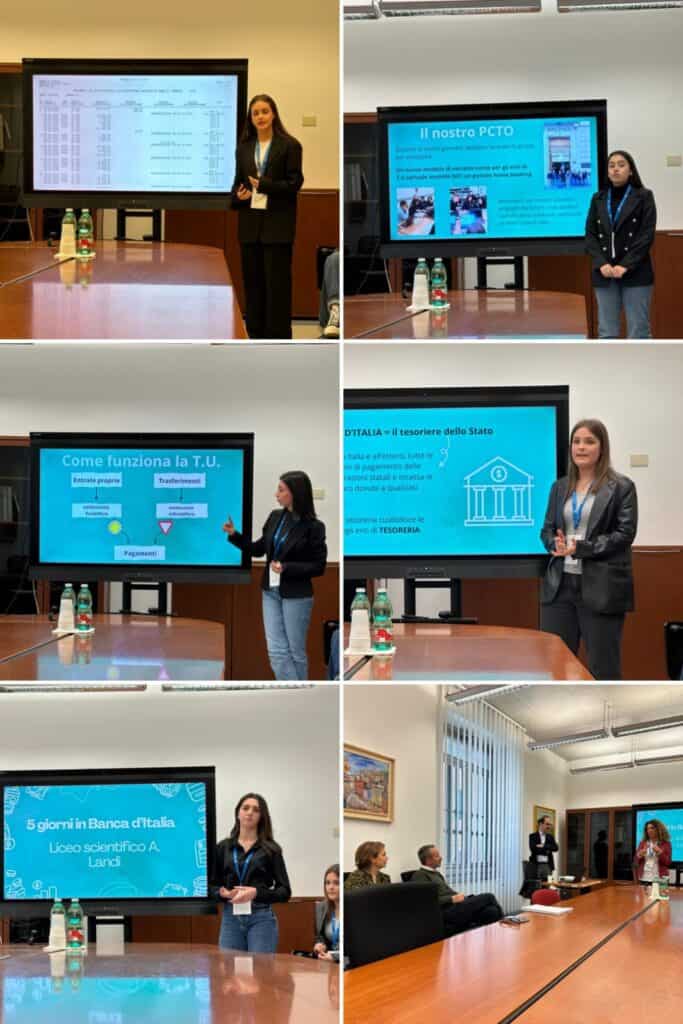 Nella settimana dal giorno 8 al 12 aprile alcuni alunni del Liceo A. Landi di Velletri hanno partecipato all’attività PCTO (Percorso per le Competenze Trasversali e per l’Orientamento) organizzato dalla Banca d’Italia, il titolo della quale “Il mestiere di Tesoriere dello Stato”. Le attività sono iniziate il 19 marzo con un incontro propedeutico presso la biblioteca del Liceo Landi, in cui i tutors Dott. Giuliano Mastrangelo e Dott. Marco Cancellara hanno introdotto ai ragazzi le basi del sistema economico e i vari servizi che la Banca d’Italia offre, fra cui, in particolare, il servizio di Tesoreria dello Stato che si occupa della gestione delle finanze degli enti pubblici, come le scuole o gli ospedali.