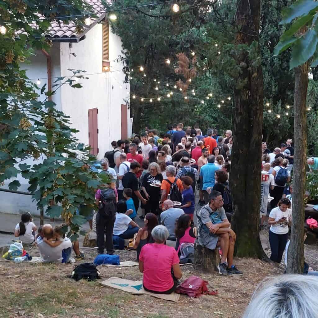 Dalle ore 20 in poi il viavai delle navette è divenuto incessante, con file nel capolinea del piazzale del Cimitero per arrivare al Rifugio. Ricchissime le degustazioni eno-gastronomiche, a cura di Briciole di Barbara Antonetti, volte a valorizzare i prodotti tipici: è stata oculata la scelta del menù, con panzanella, pizza prosciutto e fichi, formaggio miele e noci, pizza rossa, panini con prosciutto tagliato a mano, pizza scrocchiarella, salsiccette, pane e zucchero, pesche al vino, ciambelline, crostate, uva, albicocche, pesche, vino bianco e rosso (e anche soluzioni senza glutine).