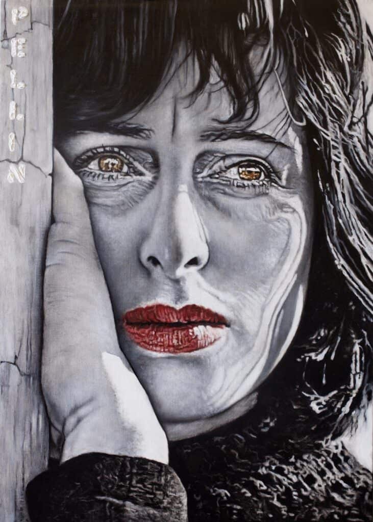 A livello tecnico emergono la perizia e il magistero di Cinzia Pellin, benché l’artista prediliga il ricorso al colore neutro del grigio in cui, mescolando il bianco e il nero in modo sempre nuovo e diverso, riesce ad ottenere degli effetti cromatici e un’infinità di toni davvero sorprendenti. La scelta di questo “non-colore” risponde all’esigenza di porsi di fronte al mondo femminile con una sorta di distacco e di oggettività, puntando sull’effetto a sorpresa delle unghie e delle labbra rosse, che spiccano illuminando le tele. A colpire sono, però, soprattutto gli occhi delle donne famose: da quelli sognanti di Charlize Teron a quelli luminosissimi della bellissima Monica Vitti, dalla profonda malinconia dello sguardo di Anna Magnani alla sensualità della splendida Claudia Cardinale. Non poteva mancare l’omaggio ad una vera icona della bellezza e della fragilità femminile, Marilyn Monroe, colta in una posa affascinante ma con lo sguardo che fa trapelare tutta l’incertezza verso il futuro. La mostra proseguirà fino a Sabato 6 Luglio. Giorni e orari di visita sono i seguenti: dal martedì al sabato, ore 10-12.30 e 16.30-19.30. Il catalogo sarà disponibile in galleria il giorno del finissage.