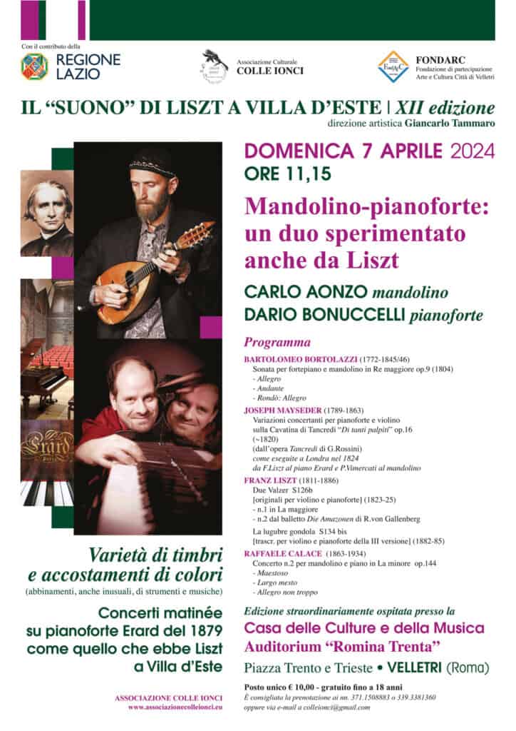 Velletri, domenica alle 11,15 “Mandolino-pianoforte: un duo sperimentato anche da Liszt” in Auditorium