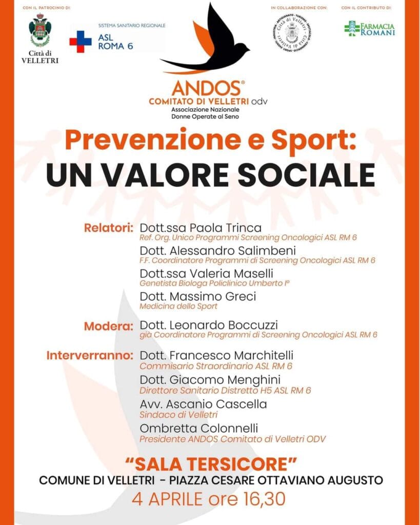 A Velletri si parla di “Prevenzione e sport: un valore sociale” in Sala Tersicore con l’Andos