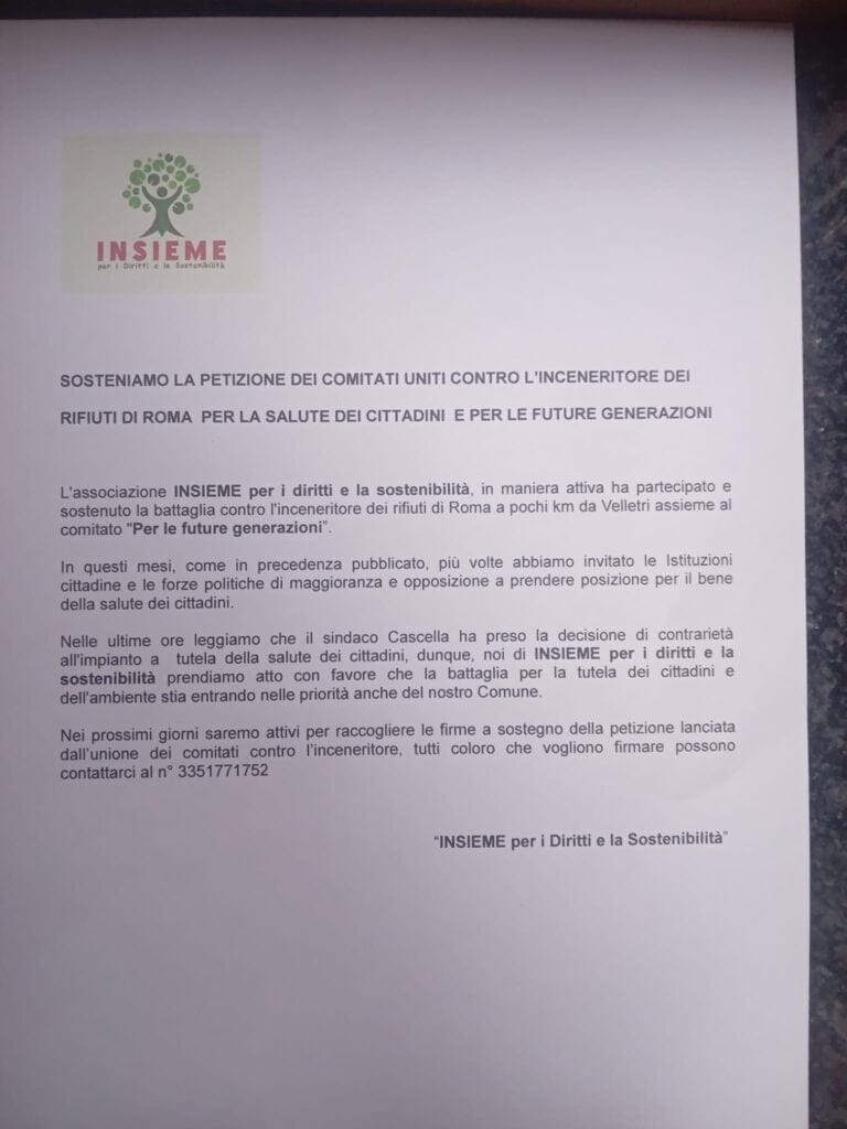 Insieme per i diritti e la sostenibilità a sostegno della Petizione contro l’Inceneritore