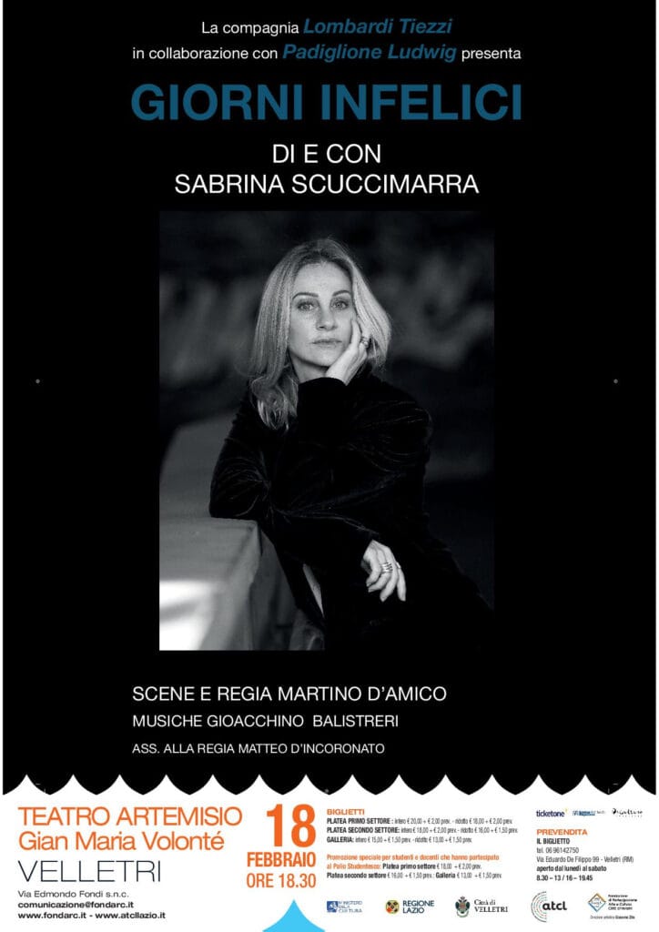 Velletri, domenica 18 febbraio al Teatro Artemisio-Volontè Sabrina Scuccimarra in “Giorni infelici”