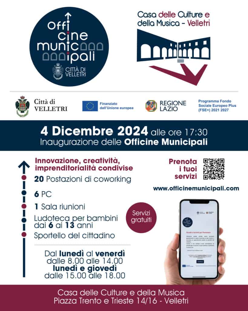 Velletri, dal 4 dicembre al via il progetto “Officine Municipali”