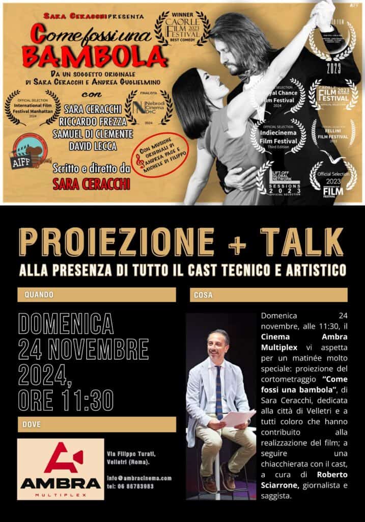 Al Cinema Ambra di Velletri la proiezione di “Come fossi una bambola” di Sara Ceracchi