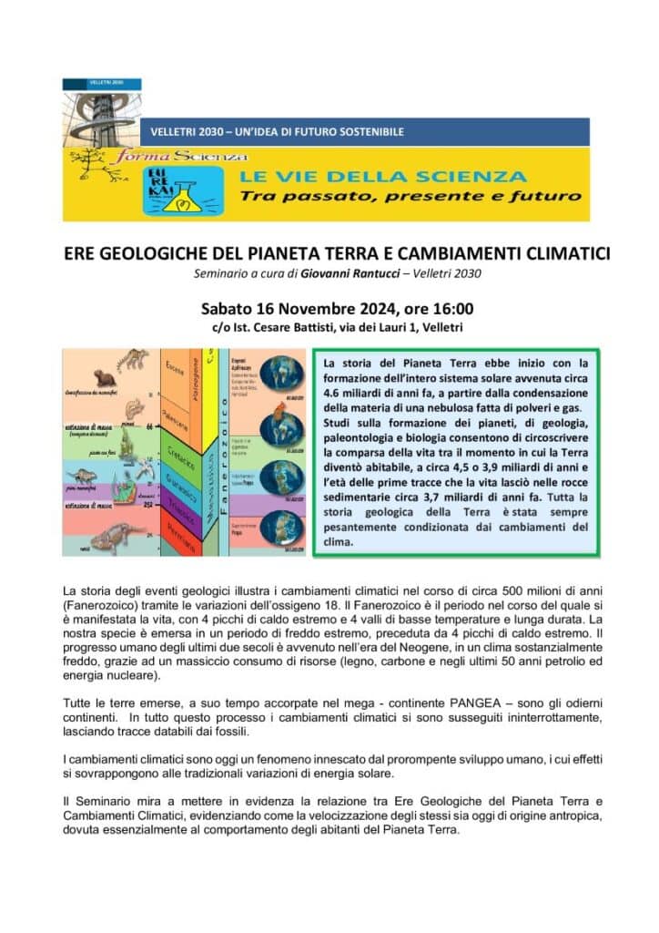 Con Velletri 2030 “Ere geologiche del Pianeta Terra e Cambiamenti Climatici”
