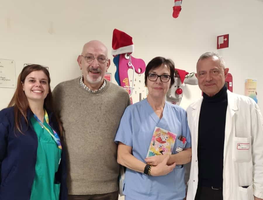 Lo scrittore veliterno Paolo Angeloni consegna la sua raccolta di fiabe ai giovani pazienti del S. Camillo