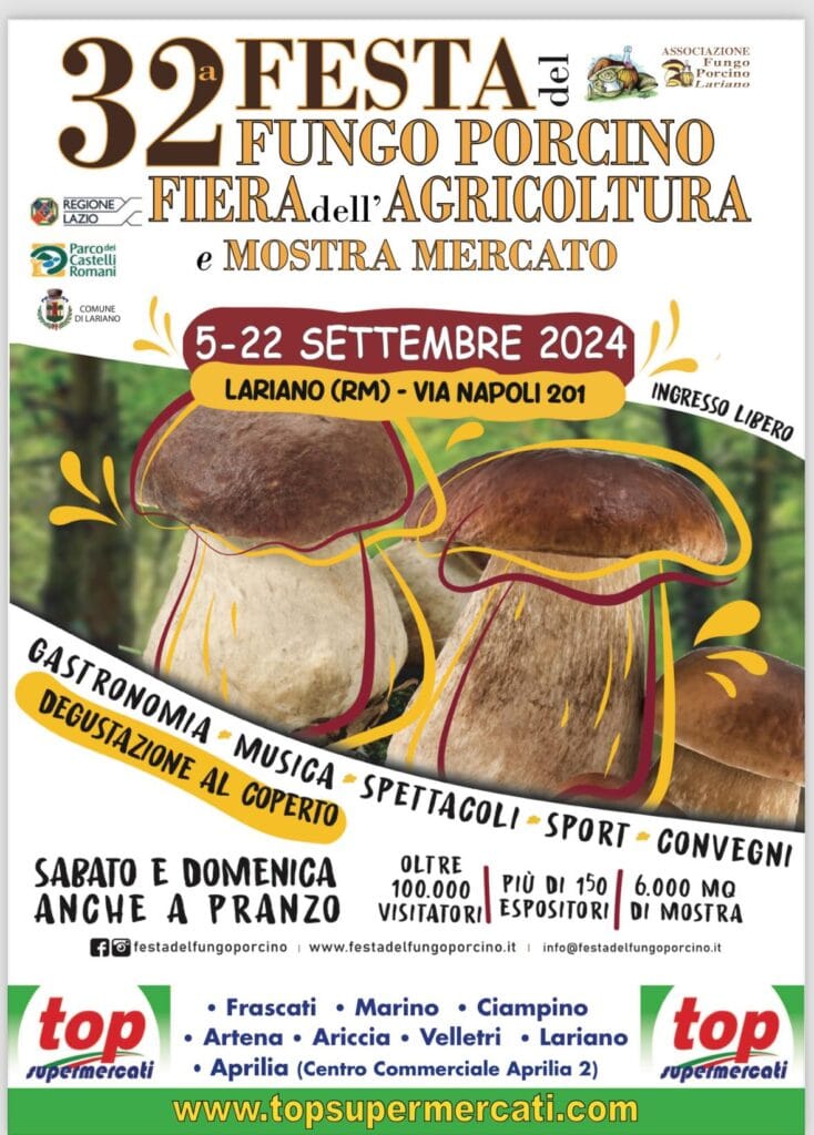 Lariano, grande attesa per la trentaduesima Festa del Fungo Porcino dal 5 al 22 settembre 2024