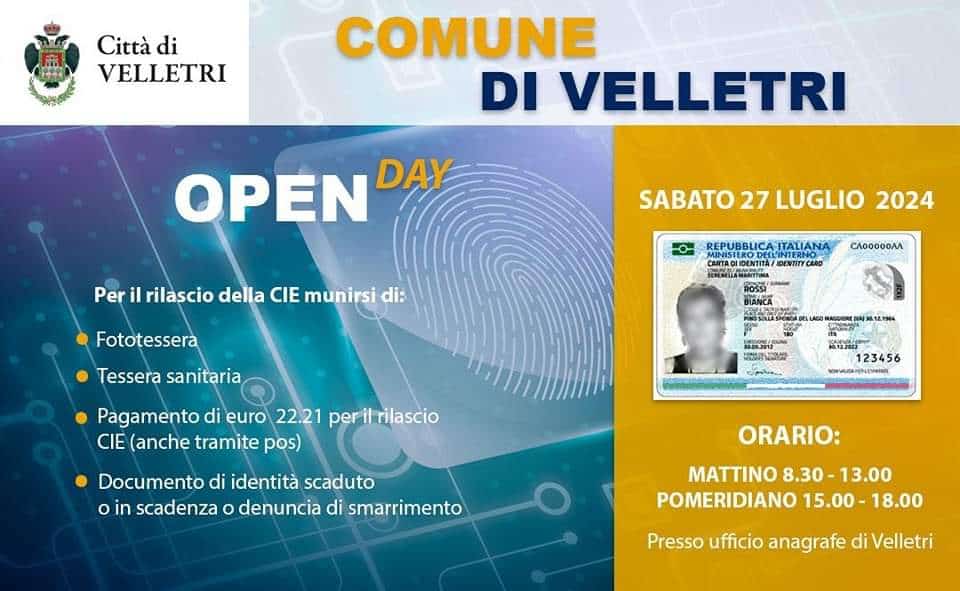 Velletri, il 27 luglio Open Day all’Ufficio Anagrafe