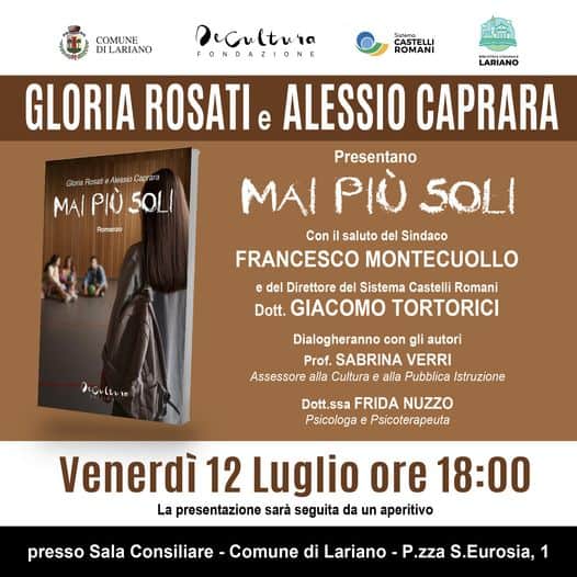 Gloria Rosati presenta a Lariano il suo nuovo romanzo “Mai più soli” scritto con Alessio Caprara