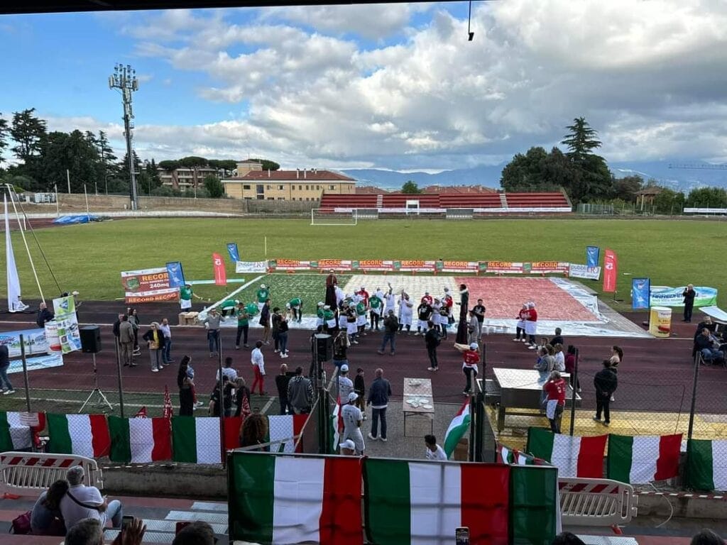 A Velletri è stata realizzata la pizza più grande del mondo (240 mq) a forma di bandiera dell’Italia