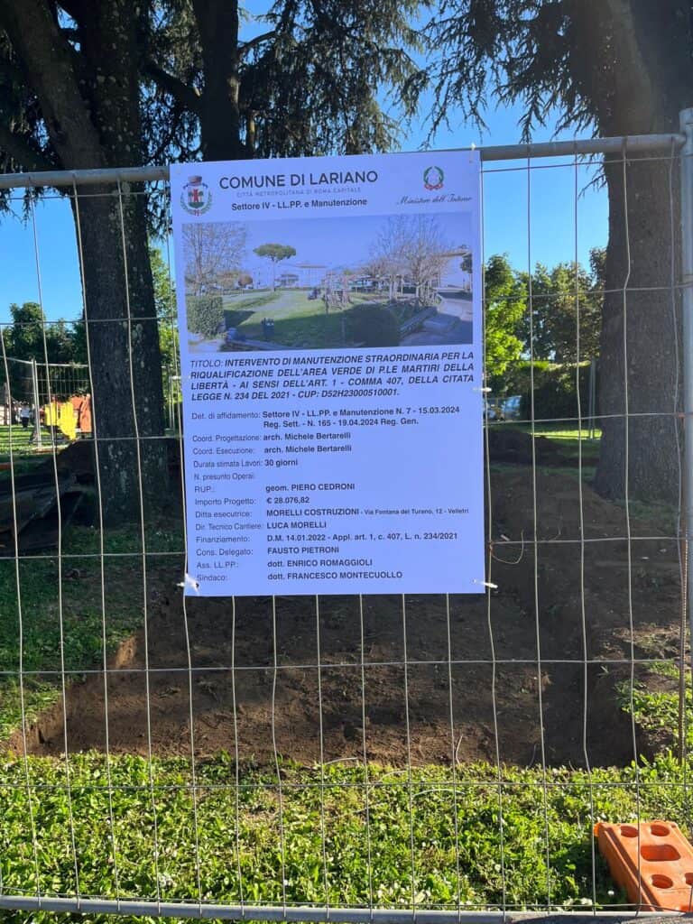 Lariano, proseguono alacremente i lavori di sistemazione dei parchi pubblici