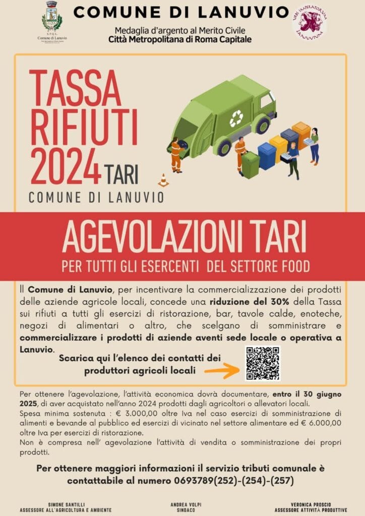 Lanuvio, agevolazioni Tari 2024 per tutti gli esercenti del settore food