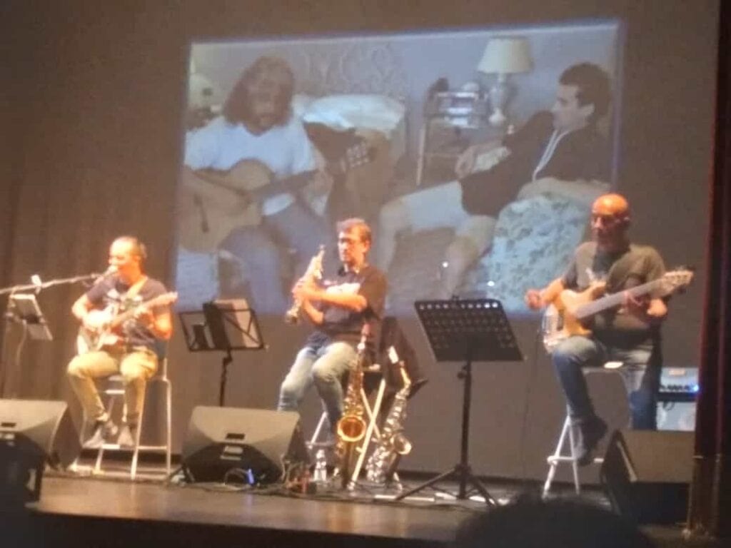 Dopodiché ha preso il via la parte musicale, il gruppo Na Tazzulella e Cafè (Michele Ranieri, voce e chitarra, Carlo Maria Micheli, sax, Maurizio Galli, basso e Pino Vecchioni, percussioni) ha regalato al numeroso pubblico accorso, alcune perle della vasta produzione discografica del cantautore campano, dall’appassionata “Terra mia” a “Napule è”, passando per “J So pazz” e “O’ scarrafone”.