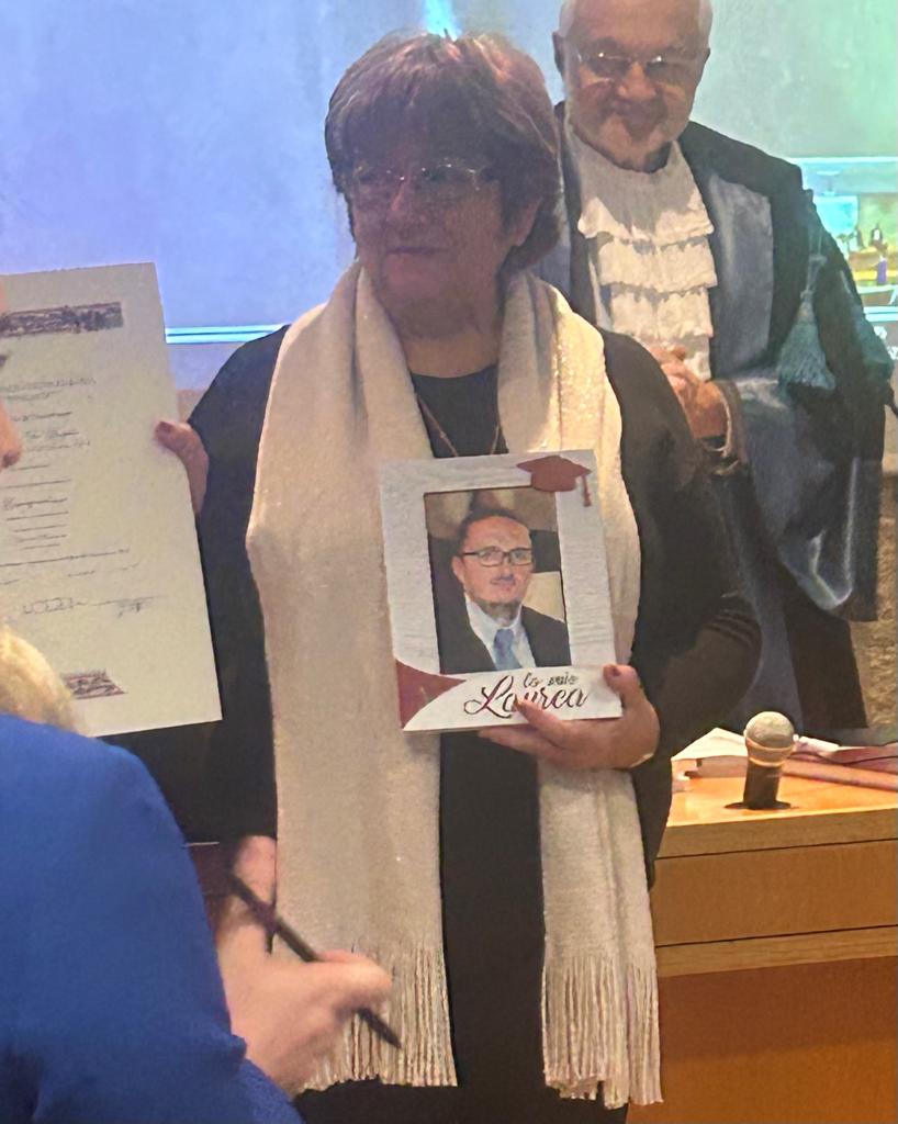 Visibilmente emozionata Isabella Colasanti, docente e mamma di Alessandro, che ha voluto rivolgere un ringraziamento a tutti: “mio figlio ha vissuto qui venti anni, lavorando giorno dopo giorno. Non lasciava mai nulla di insoluto, voleva essere sempre presente e lavorava con passione. Ci ha entusiasmato a tal punto da convincerci a trasferirci a Lariano, ci ha fatto nascere un amore profondo per la città. Era sempre in piazza, vicino all’edicola, punto di riferimento per lui. Teneva a questo lavoro che rappresentava quella passione iniziata anni prima quando ha partecipato a un seminario giornalistico al Liceo Landi di Velletri. Poi, dopo il praticantato, si è iscritto all’albo. Scriveva ovunque, persino sugli scontrini. Alessandro frequentava la facoltà di Giurisprudenza, ma poi aveva interrotto. Eppure, con nostra sorpresa, abbiamo appreso che negli ultimi tempi aveva completato gli studi e gli mancava solo la laurea con una tesi in procedura penale. La laurea alla memoria gli è stata conferita il 14 dicembre, un giorno prima della data in cui avrebbe dovuto discuterla”. L’impegno di Alessandro De Angelis è stato premiato, oltre che nel campo degli studi, anche dalla FIPAV (era arbitro di pallavolo) e dallo stesso ordine dei giornalisti, che gli ha dedicato una medaglia d’argento.
