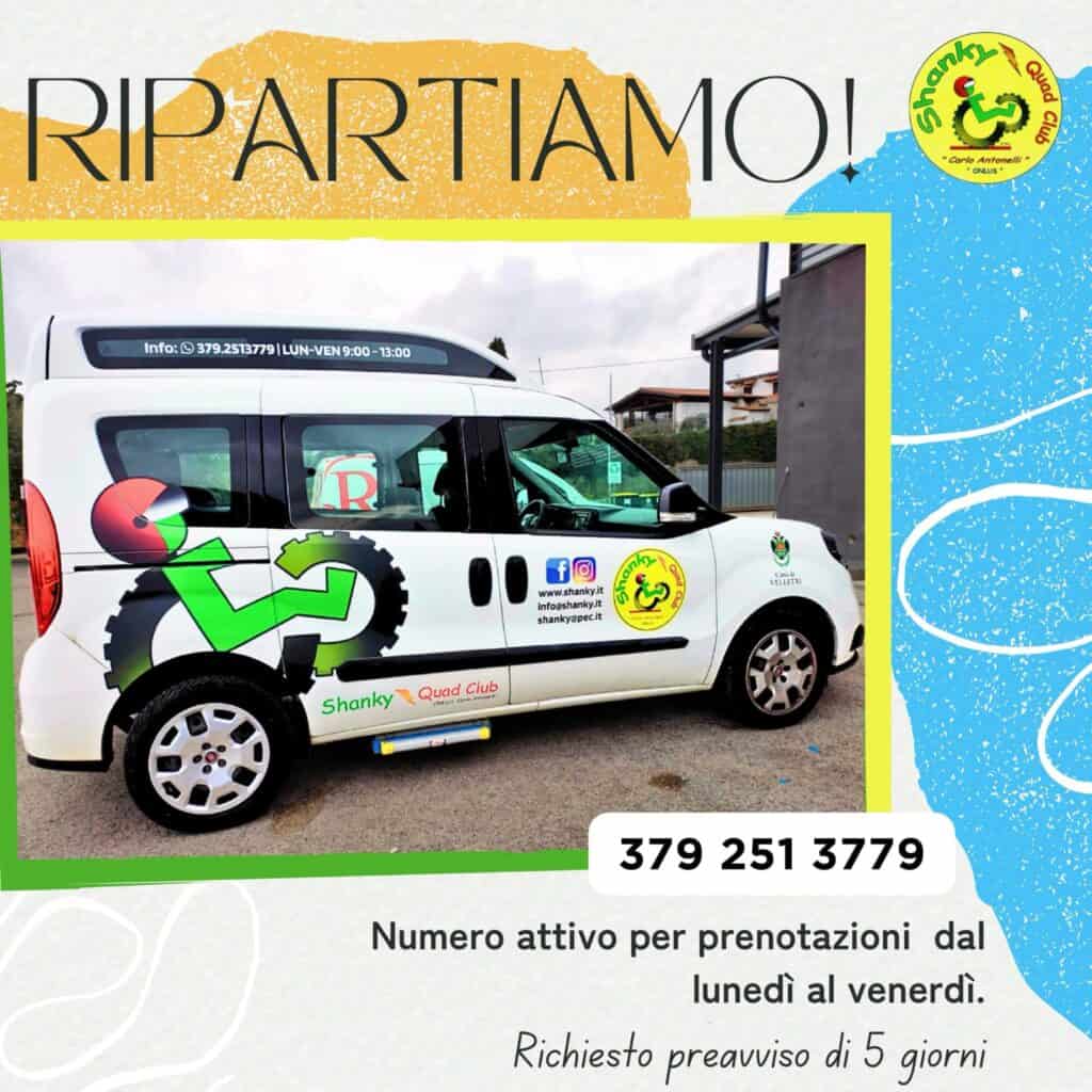 Dopo un lungo periodo di fermo, a causa di diverse problematiche, riparte finalmente a pieno regime il servizio trasporto disabili dell’Associazione Shanky. Ad annunciarlo è proprio la stessa Associazione attraverso un comunicato ufficiale sui propri canali social. Una grande notizia questa, per la comunità veliterna e non solo.