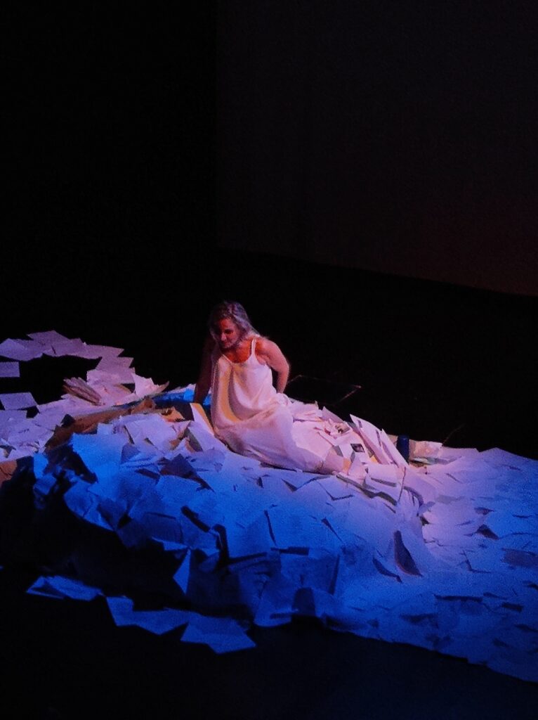 Un palco pieno di carta e di copioni, una donna intenta a recitare la sua parte ma non a teatro, bensì nella vita. “Giorni infelici” con Sabrina Scuccimarra ha catturato il pubblico di Velletri, capace di rispondere ancora una volta numeroso per la penultima data della stagione di prosa 2023-2024 del Teatro Artemisio-Volonté diretto da Giacomo Zito. Un testo moderno messo in scena da un’attrice eclettica, dinamica, espressiva al punto giusto e capace di sintetizzare, insieme all’apporto indispensabile delle musiche a fare da calibratrici ossimoriche, le contraddizioni dell’esistenza umana riportando ai giorni nostri Beckett.